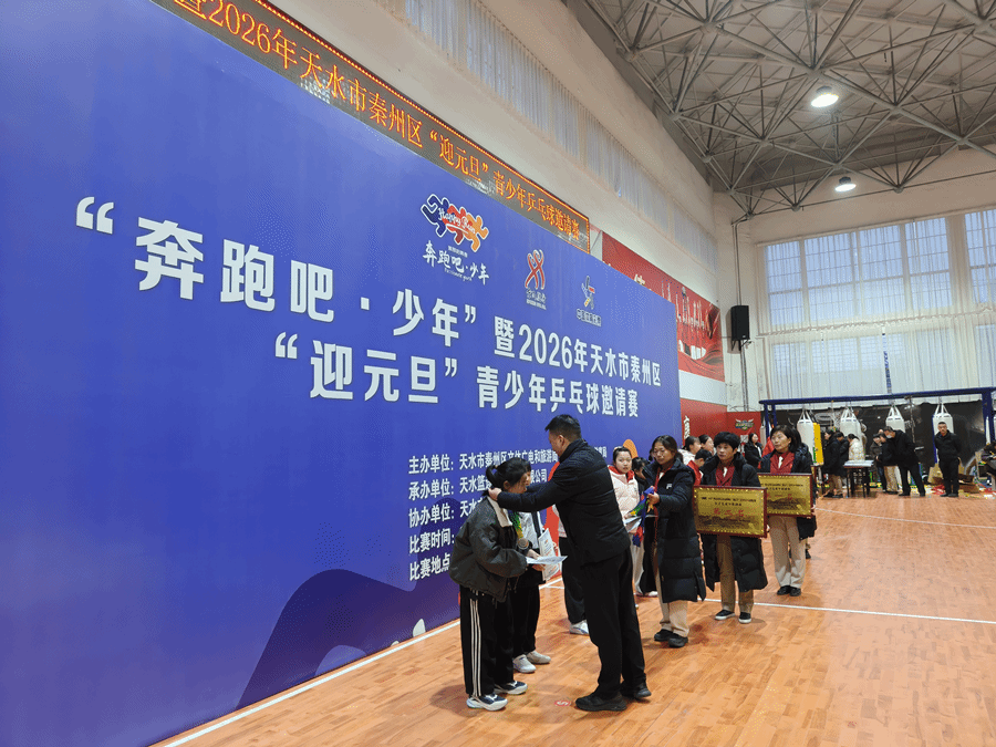 12月21日,由秦州区文体广电和旅游局、秦州区教育局联合主办,天水蓝途星耀体育有限公司承办,天水市乒乓运动协会、秦州区体育发展中心协办的“奔跑吧·少年”暨2026年秦州区迎元旦青少年乒乓球邀请赛经过激烈角逐,在秦州区南山体育馆圆满落下帷幕。