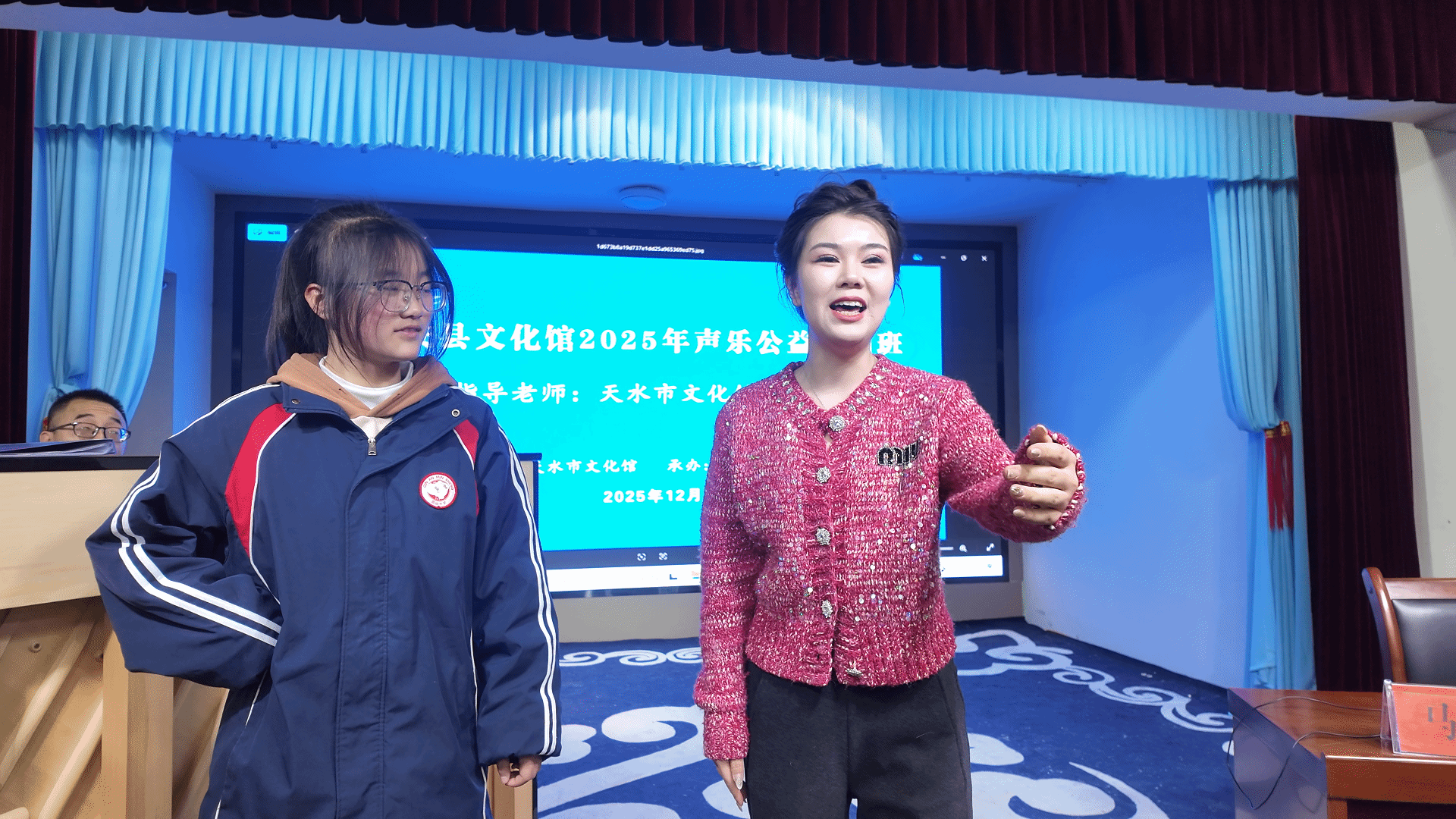 12月30日,为落实国家关于加强公共文化服务与学校美育工作的部署要求,推动文化惠民走深走实。天水市文化馆组织文化旅游专家服务团赴秦安县文化馆开展基层艺术辅导活动。专家们面向当地爱好音乐的中小学生进行声乐专项培训,将专业艺术指导和优质美育资源直接送达基层,以声乐为桥梁,切实推进青少年美育实践。