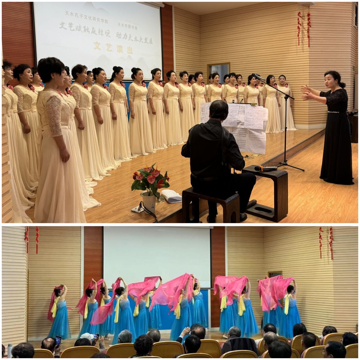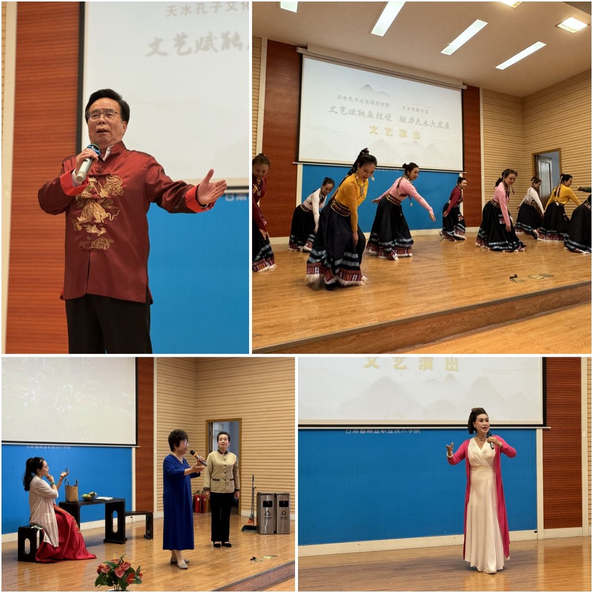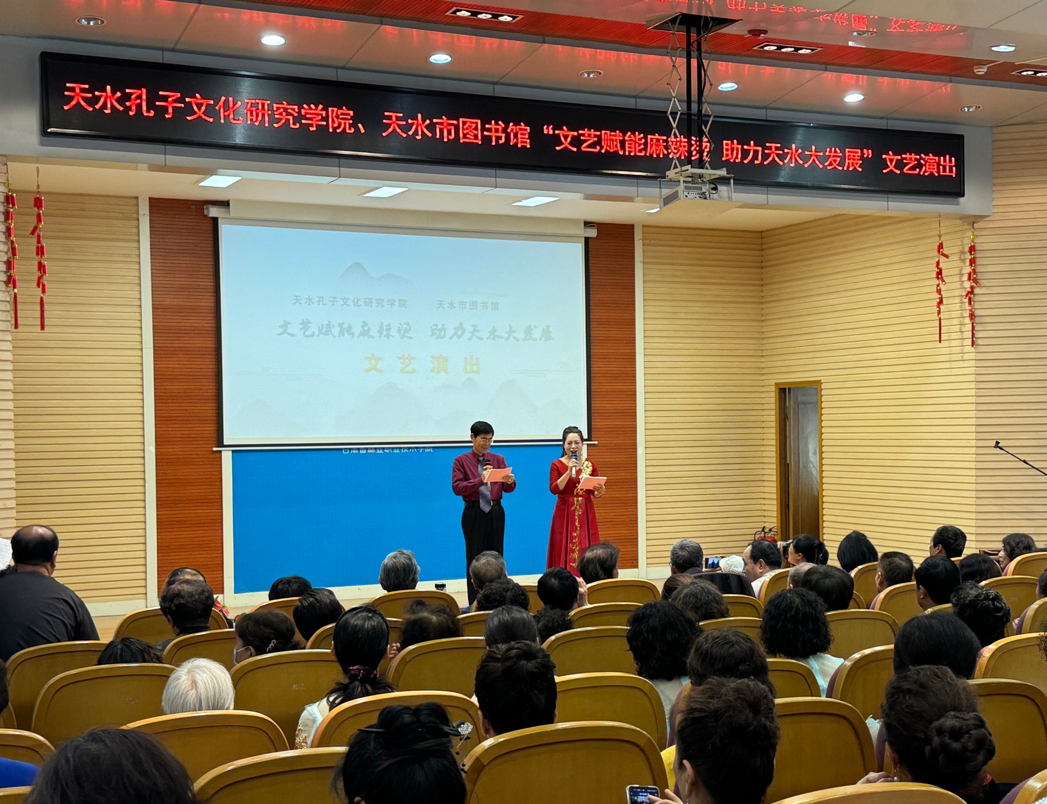 5月11日下午,天水市图书馆联合孔子文化研究学院举办的“文艺赋能麻辣烫 助力天水大发展”专场文艺演出在市图书馆报告厅举行。来自市老年大学的近百名师生为游客和市民朋友带来了一场热辣滚烫的视觉盛宴。