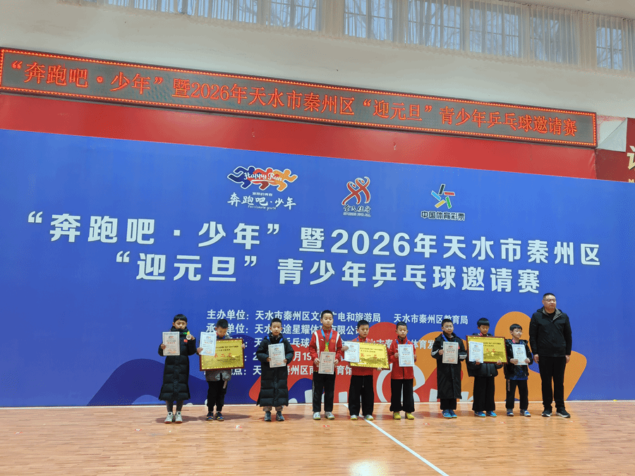 12月21日,由秦州区文体广电和旅游局、秦州区教育局联合主办,天水蓝途星耀体育有限公司承办,天水市乒乓运动协会、秦州区体育发展中心协办的“奔跑吧·少年”暨2026年秦州区迎元旦青少年乒乓球邀请赛经过激烈角逐,在秦州区南山体育馆圆满落下帷幕。