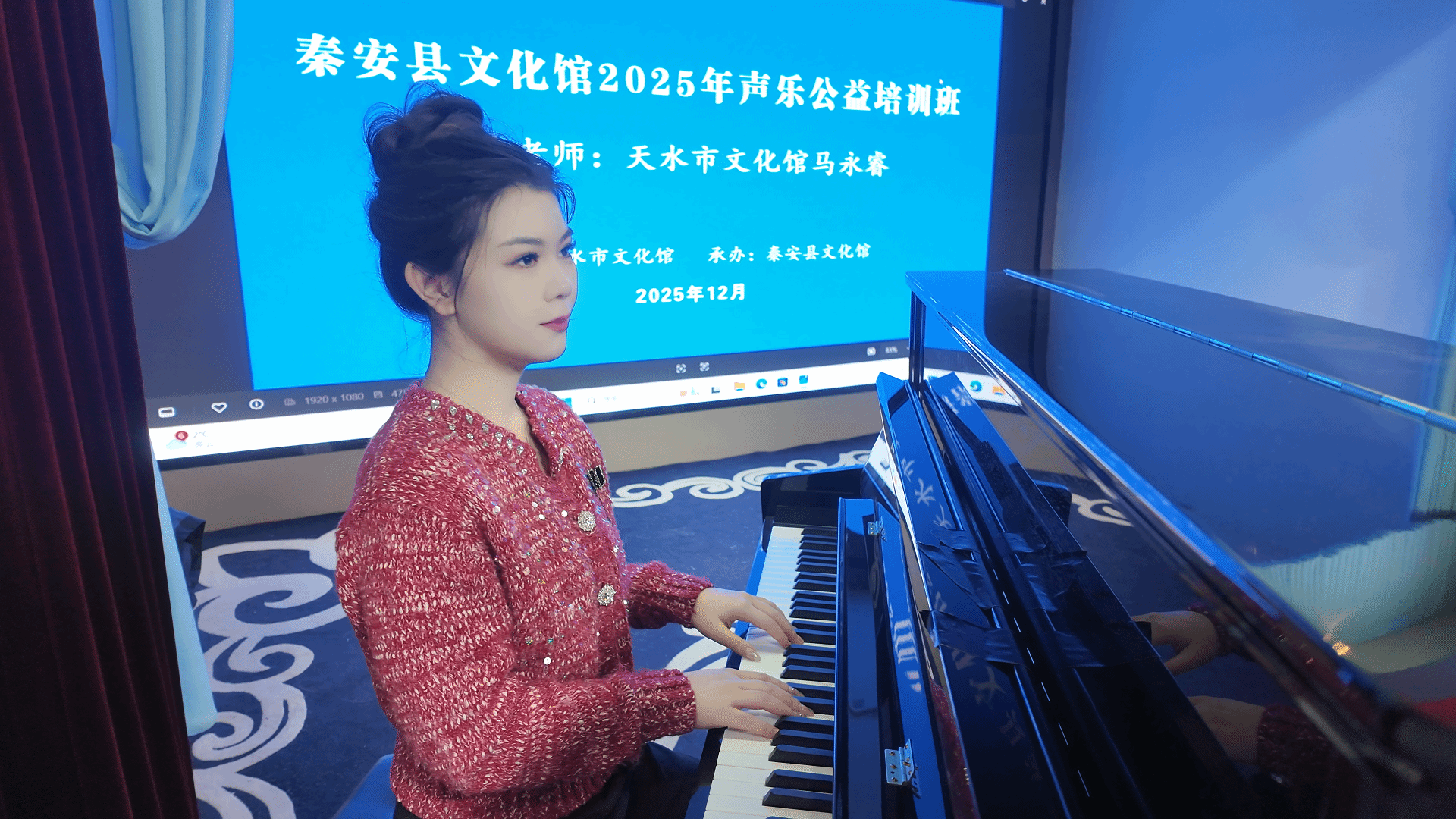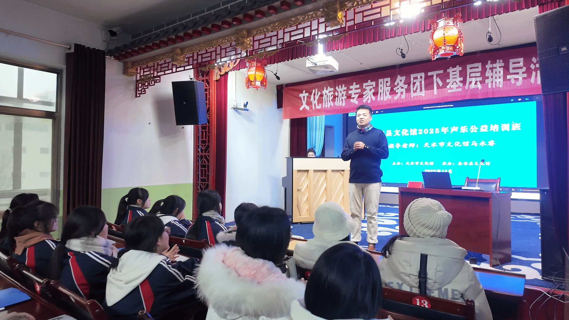 12月30日,为落实国家关于加强公共文化服务与学校美育工作的部署要求,推动文化惠民走深走实。天水市文化馆组织文化旅游专家服务团赴秦安县文化馆开展基层艺术辅导活动。专家们面向当地爱好音乐的中小学生进行声乐专项培训,将专业艺术指导和优质美育资源直接送达基层,以声乐为桥梁,切实推进青少年美育实践。