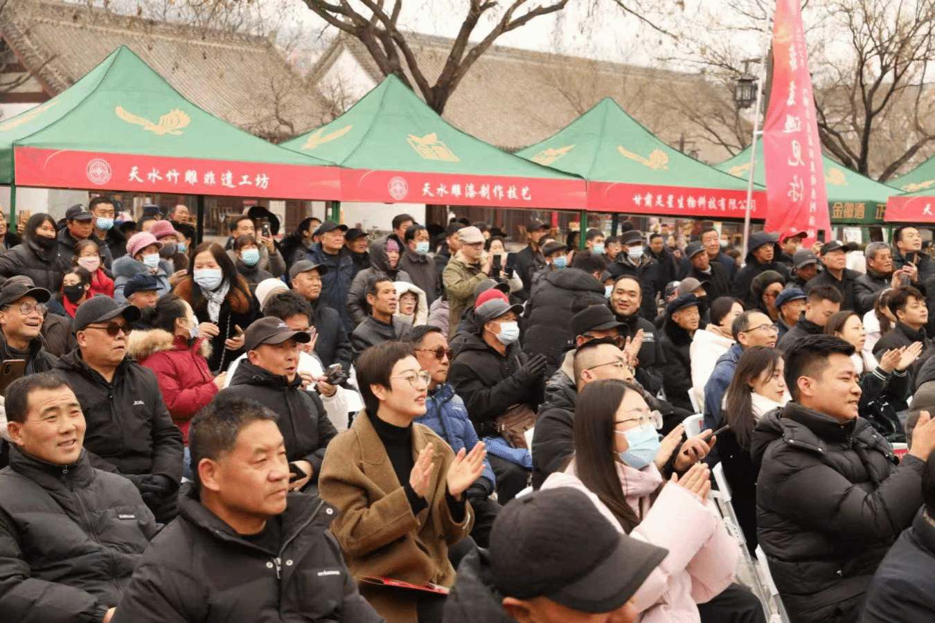 天水方言快板、古琴弹奏、清水跑驴舞、秦州唢呐、秦腔绝活、安家棍术、清水木人摔跤、八卦太极养生扇等非遗节目闪亮登场,赢得现场观众喝彩连连。同时,30余家省市级非遗工坊、特色商品展销企业,琳琅满目的非遗文创及特色商品100余种将荟萃一堂,方便广大市民游客品鉴购买。