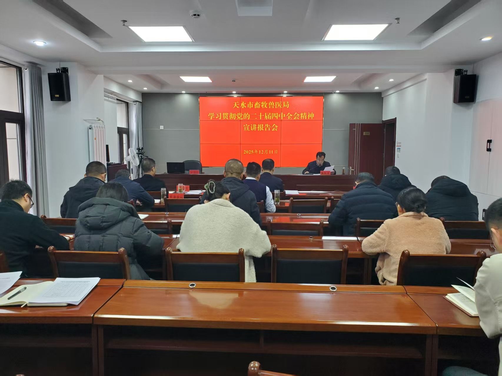 12月11日,市畜牧兽医局召开党组理论学习中心组(扩大)会议暨学习贯彻党的二十届四中全会精神宣讲报告会,市畜牧兽医局党组书记、局长梅凯吉作宣讲报告。市畜牧兽医局班子成员,局属各单位负责人、局机关全体党员干部参加报告会。