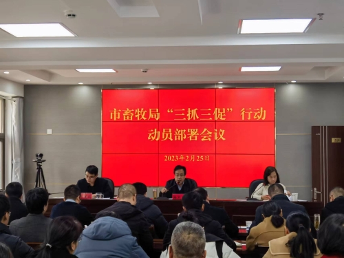 会议强调,要把“三抓三促”行动同深入开展主题教育结合起来,同落实畜牧业年度目标任务结合起来,同稳产保供结合起来,同优化营商环境、扩大招商引资结合起来,一体部署、一体推进、一体落实,以“三抓三促”行动助推畜牧业高质量发展取得新进展新成效。要在强素质、提本领上下苦功。认真落实“第一议题”和党组理论学习中心组学习制度,重点学习习近平新时代中国特色社会主义思想、党的二十大精神、党章党规党纪和畜牧兽医法律法规。建立和落实技术人员讲科技的机制,围绕畜禽养殖、动物防疫、畜禽产品质量安全等方面的技术知识进行宣讲和培训。组织各县区畜牧兽医专业技术人员开展技能大比武活动,进一步提升技术人员动物防疫检疫水平。要在强担当、促落实上下苦功。建立台账清单促落实,对今年畜牧兽医重点工作要全部建立任务清单、责任清单。强化技术指导促落实,建立落实市级畜牧兽医技术人员包龙头企业、县级畜牧兽医技术人员包规模养殖场、乡站技术人员包养殖户“三包”制度。严格量化考评促落实,推行“榜单制”“例会制”“观摩制”,借鉴经验、查找不足、促进提升。抓点示范促落实,打造一批在县区叫得响、全市树标杆、全省起示范的样板。要在提质效、促发展上下苦功。提高效率促发展,对于议定的事项立说立行,做到精神贯彻要快、方案制定要快、工作启动要快。招商引资促发展,开展持续性、高频度“走出去”招商活动,对接洽谈一批优强企业和重大项目。加快项目建设促发展,多措并举,推动项目早开工、早投产、早达效。