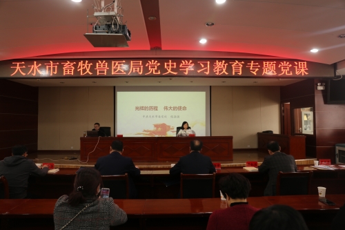 4月8日下午,天水市畜牧兽医局举办党史学习教育专题党课。局机关及局属各单位、共建社区党员代表共计60余人参加。