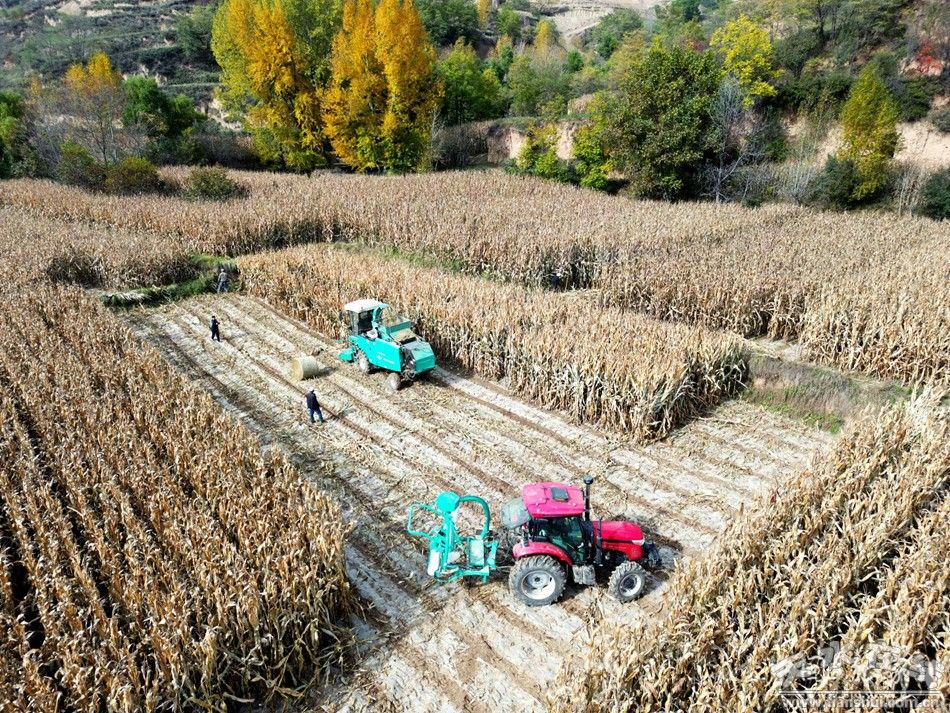 金秋时节,秋染田园,走进张家川县刘堡镇各村组的田间地头,一台台玉米秸秆收获机和玉米秸秆打包机在田间来回穿梭,伴随着隆隆的机器轰鸣声,一排排玉米秸秆被收割、粉碎、打捆、缠膜,一气呵成。