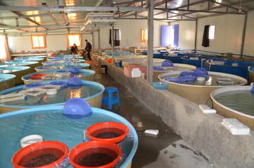 二是深入到到桃花沟虹鳟鱼场指导虹鳟、金鳟鱼卵的孵化、培育关键技术要点。虹鳟鱼场从辽宁购进虹鳟、金鳟鱼卵30万枚已孵化出鱼苗,苗种体格健壮,成活率高。通过技术指导和养殖场的精心管理,力争孵化率达到90﹪以上。培育优质苗种,既增加养殖场经济收入,又解决我市及周边水产养殖企业鱼苗购买难的问题。目前苗种长势良好,已达到1-2公分。