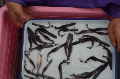 5月6日,天水市渔业技术推广站从四川眉山市引进1万尾新品种匙吻鲟鱼苗运抵我市,分别投放到麦积区九华山生态农业发展有限公司和武山县东胜养殖专业合作社2个渔场。这次引进的匙吻鲟幼苗平均体长8-12cm,尾重70-80克,鱼苗体格健壮、规格整齐、体表光滑、精神状态好。