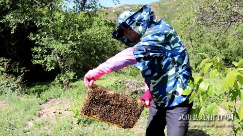立足生态优势找准致富突破口。杨河镇地处武山南部山区,气候温润,森林覆盖率高,自然生态独特,生物资源珍贵集中,野生蜜源植物品种多,加之近几年来,随着当归、党参等中药材种植面积不断扩大,为蜜蜂养殖提供了广泛的空间与蜜源,发展中蜂养殖具有得天独厚的自然资源和地理优势,杨河镇党委、政府突出产业发展在脱贫攻坚中的优先地位,以贫困户脱贫为核心,以做大做强致富产业为支撑,强化示范引领,把中蜂养殖产业作为精准脱贫的重要项目来推广,鼓励贫困户大力发展中蜂养殖,打造“贫困户+合作社+基地”的模式,为贫困户铺就了一条发家致富的康庄大道。截至目前,全镇养蜂专业合作社共6个,养蜂户从2018年59户增加到140户,总饲养蜂群1050箱,今年全镇养蜂预计收入达200多万,养蜂业已成为杨河镇农民脱贫致富的新途径。