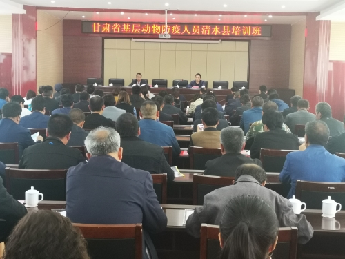 为全面提升全县基层动物防疫人员技能水平和服务能力,着力提高基层动物疫病防控能力,有效降低动物因病死亡率,加快推动畜牧业健康发展,助推清水县精准扶贫精准脱贫工作,按照《甘肃省农业农村厅关于印发2019年全省基层动物防疫人员培训工作方案的通知》文件精神, 2019年5月21日,清水县畜牧兽医事务服务中心组织举办了2019年清水县基层动物防疫人员技术培训班。此次培训班从21日开始,安排7天时间,清水县18乡镇动物疫病防控与畜牧技术服务中心专业技术骨干30人和未参加新型职业农民培育工程的40名村级动物防疫员共计70人参加培训。培训班主要围绕畜牧兽医相关法律法规及政策介绍、动物疫病防控知识、动物疫病防治技术规范,养殖场户生物安全管理、人员安全防护、动物卫生监督管理、畜牧养殖管理技术等方面进行专业培训。通过集中培训,将使学员全面掌握畜牧兽医相关业务知识,为清水县脱贫攻坚、畜牧产业建设、动物疫病防控和动物卫生安全等工作提供坚实的技术支撑。