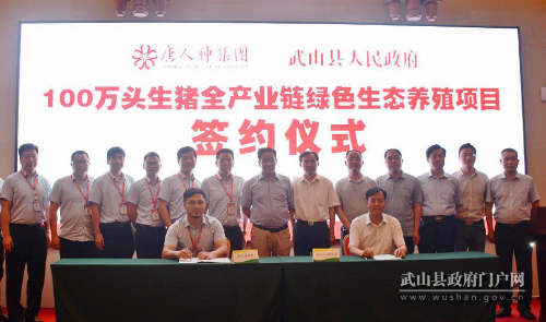 7月16日,武山县与唐人神集团在湖南株洲唐人神集团总部举行了100万头生猪全产业链绿色生态养殖项目签约仪式。