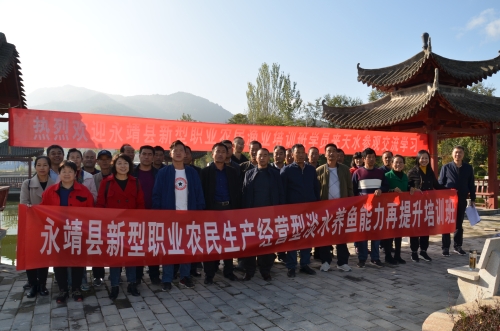 近日,永靖县渔业站组织新型职业农民渔业培训班40多人深入我市麦积区九华山生态农业发展有限公司、喜洋洋渔庄、怡轩园渔庄、武山县龙台镇和四门镇冷水鱼养殖场,现场参观学习特色渔业,听取我市渔业发展情况,学习了解近年来我市引进推广的新品种,同时养殖场负责人对场区基本情况、休闲渔业经营方式方法、垂钓价格、收入等情况进行了讲解介绍。学员们一致认为,我市休闲渔业发展势头良好,休闲渔场基础设施投资大、档次高,值得学习借鉴。