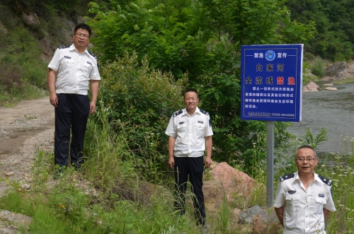 秦州区娘娘坝镇白家河流域李子园段的百姓和当地企业职工长期以来就有垂钓的习惯。自今年3月份市政府禁渔通告下发以来,我们积极联合秦州区渔业站执法人员,多次深入此地,发动当地村委会干部,充分利用乡村文化阵地,利用广播宣传《天水市人民政府关于在全市自然水域禁渔的通告》,在主干道三角路口制作了100平方米的大型禁渔宣传牌,向当地群众和企业职工散发《禁渔通告》,讲解自然水域水生生物的脆弱性和在自然水域非法捕鱼危害性、破坏性,在村口和主要路段张贴和悬挂宣传标语,聘请当地爱心人士成为禁渔义务宣传员。