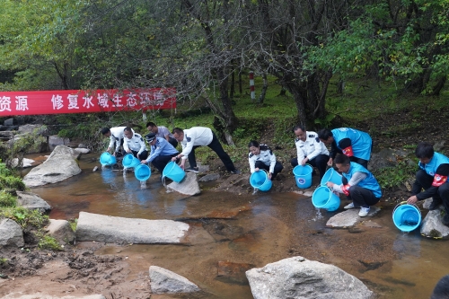 为有效恢复和保护水生生物资源、改善水域生态环境和贯彻市七届人大常委会第三十次会议通过的我市实施《野生动物保护法》审议意见精神,9月4日,由天水市畜牧兽医局主办、张家川县畜牧兽医事务服务中心承办的2020年秦岭细鳞鲑增殖放流活动在张家川县秦岭细鳞鲑国家级水产种质资源保护区启动,当天共增殖放流秦岭细鳞鲑3龄苗种4000多尾,价值14万元。天水市人大、市公安局、市林业和草原局、张川县政府、县人大等领导出席启动仪式,同市、县渔政人员、马鹿镇政府和当地村民共50多人参加了现场放流活动。活动现场向马鹿镇五位村民颁发了禁捕护渔义务宣传员聘书,公安民警带领渔政人员和禁捕护渔员开展了巡河执法宣传活动,张川县公证处对放流品种、数量、规格、地点和放流过程进行了全程监督公证。