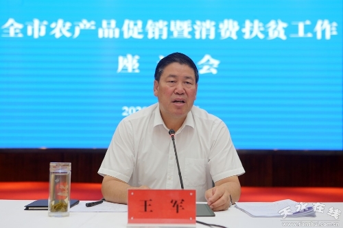 9月8日,天水市委副书记、市长王军主持召开全市农产品促销暨消费扶贫工作座谈会。他强调,要认真学习贯彻习近平总书记关于农产品产销对接工作重要指示精神,强化协调服务,加强产销对接,多渠道解决农产品难卖问题,确保群众持续稳定增收,助力打赢打好脱贫攻坚收官战。