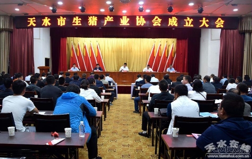 会议宣读了《关于成立天水市生猪产业协会的批复》;宣布了天水市生猪产业协会第一届理事会会长、副会长、秘书长、理事、监事长、监事名单;当选的第一届生猪产业协会会长龙向阳作了发言。