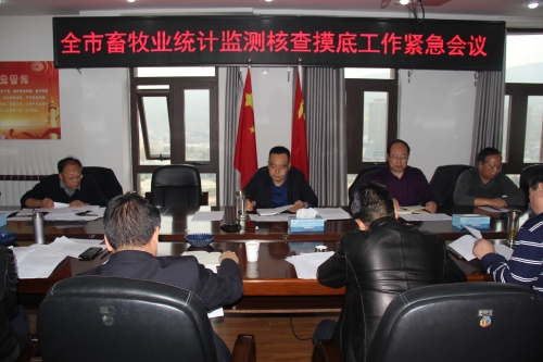 为认真贯彻落实市委常委会(扩大)会议、全市农业农村经济发展分析会议和市政协主席、市委农村工作领导小组常务副组长赵卫东调研市畜牧兽医局会议精神,11月8日,市畜牧兽医局组织召开全市畜牧业统计监测核查摸底工作紧急会议。局党组书记、局长王新强主持会议,局相关班子成员、相关科室和局属单位负责人、各县区畜牧兽医事务服务中心主任等20多人参加会议。