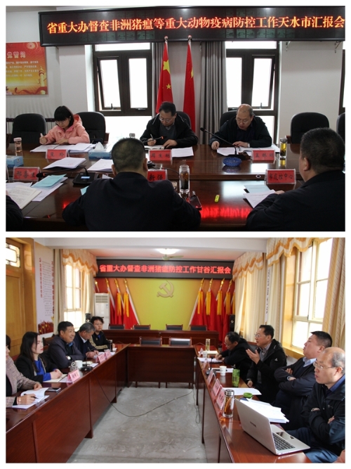 督查组采取实地查看、听取汇报、座谈讨论和查阅资料等方式,先后深入武山、甘谷、秦州、麦积四县区,实地检查了滩歌镇、金山镇、天水镇、马跑泉镇等6个乡镇农业综合服务中心,唐人神武山美神、大像山镇何家沟等11个养殖场,益民肉品、永召食品、益康食品、康晟食品等4个生猪定点屠宰场,四县区动物疫病预防控制中心兽医实验室和麦积区百花公路动物防疫监督检查站,重点围绕非洲猪瘟等重大动物疫病防控、非洲猪瘟假疫苗违法行为查处、“瘦肉精”等违禁药品专项排查、畜产品质量安全监管、兽医实验室建设、生猪调运监管六方面进行督查。督查组对我市重大动物疫病防控和畜产品质量安全监管等工作落实情况表示充分的肯定,对部分养殖场、屠宰场疫病防控和兽医实验室建设等方面存在的问题,现场提出整改要求。