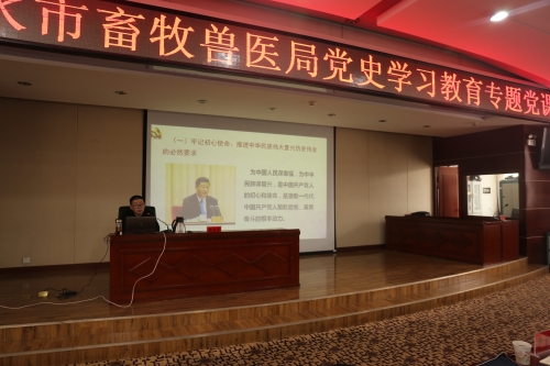 4月8日下午,天水市畜牧兽医局举办党史学习教育专题党课。局机关及局属各单位、共建社区党员代表共计60余人参加。