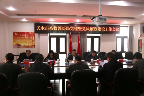 4月20日上午,天水市畜牧兽医局召开党建暨党风廉政建设工作会议,派驻市政府办公室纪检监察组副组长孙超到会指导并讲话。局党组成员、局系统副科以上干部参加会议。