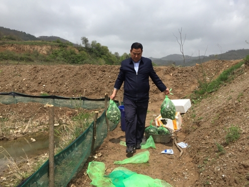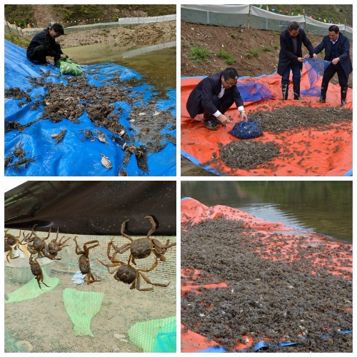 4月26日,来自天水市区两级的渔业技术人员向秦州区皂郊镇马家河渔场和娘娘坝镇李子园大闸蟹养殖场投放大闸蟹幼苗数万只,并对养殖户从大闸蟹苗种消毒、温差调节、水质调控、饲料投喂、防逃防害等方面进行认真指导。
