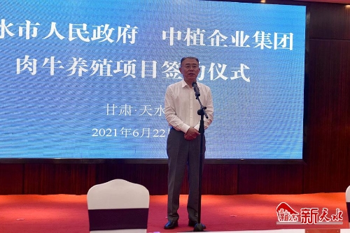 6月22日下午,天水市人民政府与中植企业集团肉牛养殖项目签约仪式在天水举行。