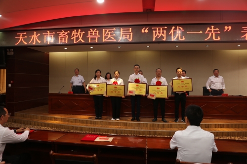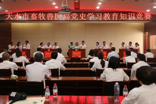 为庆祝中国共产党成立100周年,深入推动党史学习教育走深走实,6月29日,天水市畜牧兽医局举办了“知史爱党、知史爱国、知史爱岗”—庆祝建党100周年党史知识竞赛。局机关和局属各单位的5个党支部代表队参加竞赛。局班子成员、调研员,局机关和局属各单位干部职工、共建社区党员代表共60余人观看了比赛。