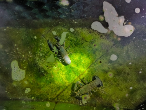 近日,天水市渔业工作站一行来到天水国家农业科技园区一水产养殖大棚中,和农业园区负责人一同探望退伍军人张峰和他引进试验养殖的3400尾澳洲淡水小龙虾。这是我市继2018年引进小龙虾后又引进的一种虾类新品种。