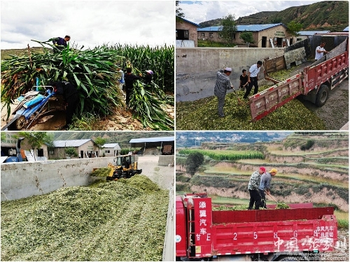 8月18日,在张家川县恭门镇西关村饲料玉米种植基地,种植户们忙着收割青贮玉米,收割机在波动着绿浪的田间来回穿行,不停地将青贮饲料玉米进行收割、粉碎、拉运、入窖,为牲畜越冬储备“粮食”。
