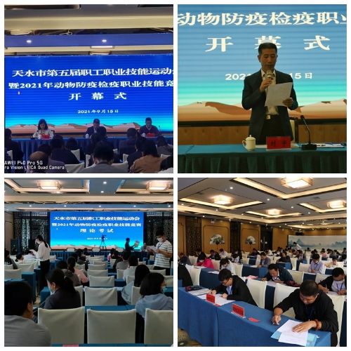 为进一步激发全市动物防疫检疫队伍的工作活力,大力弘扬劳模精神、劳动精神、工匠精神,培养畜牧兽医行业知识型、技能型、创新型劳动者队伍。在天水市第五届职工职业技能竞赛组委会领导下,在市县区充分培训演练和预赛的基础上,天水市畜牧兽医局联合市人社局、市总工会等各部门于2021年9月15日至16日,举办了全市第五届职工职业技能运动会暨2021年动物防疫检疫职业技能竞赛决赛。竞赛围绕动物疫病防治员、兽医实验室检测员、屠宰检疫员和水生物病害防治员等四个工种进行大比武。