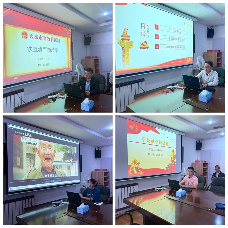 为深入贯彻习近平总书记“七一”重要讲话精神,进一步掀起局机关党员干部铭记红色历史、传承红色基因、弘扬建党精神的热潮,9月22日,天水市畜牧兽医局举行“重温红色记忆,传承建党精神”党史故事分享会。会议由局党组成员、副局长王海峰同志主持,局机关全体职工参加会议。