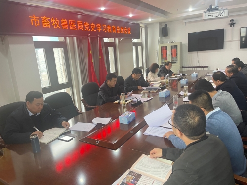 2月25日,市畜牧兽医局召开党史学习教育总结会议,局党组班子成员、调研员、局属各单位主要负责人、局机关全体干部职工参加会议。
