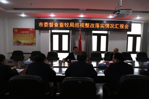 孙晓局长作了表态发言,全市畜牧系统将在已经整改取得成绩的基础上,进一步转变作风,着力引大扶强,抓点示范,抓好畜禽粪污治理,打好非洲猪瘟阻击战,加大对龙头企业和养殖农民专业合作社的培训力度,增强龙头企业示范效应和合作社带动能力,全面提高全市畜牧产业现代化发展和产业扶贫工作水平。