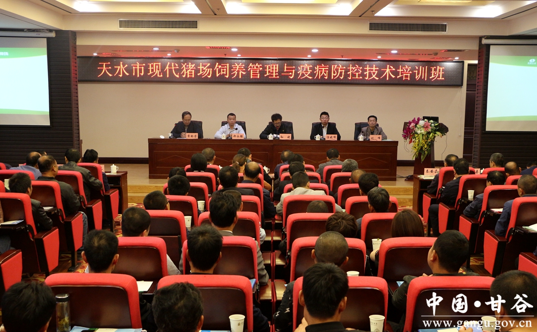 为进一步提升全市猪产业规模化、标准化养殖科技水平,增加养殖效益,推动猪产业健康发展,5月7日,天水市现代猪场饲养管理与疫病防控技术培训班在甘谷县举行。市畜牧兽医局长孙晓,副局长霍称芳,副县长汤晓峰出席开班仪式。各县区畜牧兽医局分管局长、畜牧站站长及相关技术人员、规模化标准化养猪场负责人共计200多人参加培训会议。