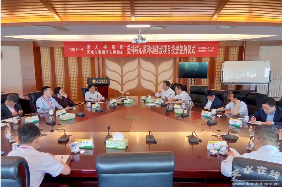 2018年4月21日,秦州区与唐人神集团在湖南株洲,湘江河畔,橘子洲头唐人神集团总部举行了“核心原种场建设项目投资协议”签约仪式。