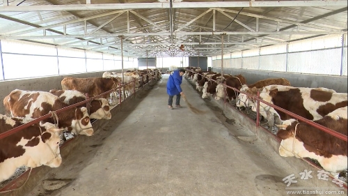 “我自己种了四百多亩青贮饲料,还种了五十多亩紫花苜蓿供牛一年的量,用的是预混料,吃了抗病强,也提高肉牛的肉质。下一步想着继续扩大规模,在设施圈养的有利条件下扩大规模。”天水镇龙望发牛养殖专业合作社负责人闫小军说。