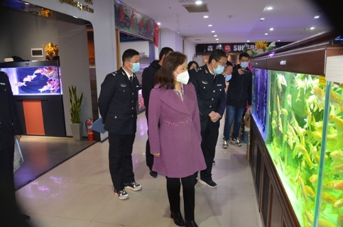 为进一步落实《中华人民共和国生物安全法》,加强我市鳄雀鳝等外来入侵物种防控工作。11月14日—18日,由天水市畜牧兽医局副局长张琥琴带队,组织市渔业工作站和基层农业行政综合执法大队执法人员,组成专项排查工作组,深入秦州区、麦积区等花鸟鱼虫市场等场所,对水产品经营户销售外来入侵水生动物情况进行排查,全面掌握我市范围内鳄雀鳝等外来水生动物分布情况,分析研判风险隐患。