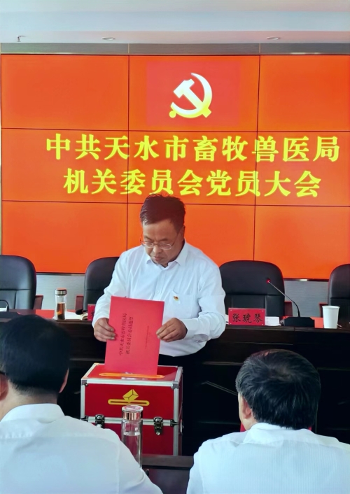 9月1日,中共天水市畜牧兽医局机关委员会召开党员大会,选举产生新一届机关委员会和机关纪律检查委员会。大会由局党组成员、副局长、机关党委书记张琥琴主持,局党组书记、局长梅凯吉出席会议并讲话,局系统全体党员参会。