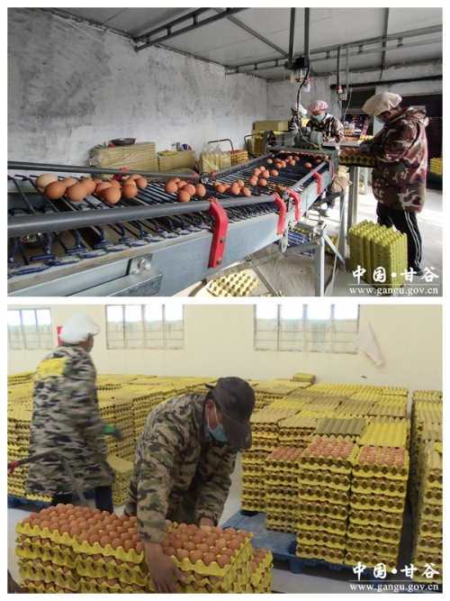 甘谷县丰裕养殖有限责任公司副总经理魏永繁说,本厂目前蛋鸡存栏量有105000只左右,日均产蛋量有10万枚。现在养殖基本实现了自动化,鸡蛋一年的销售额大概在2,000万左右,鸡蛋全部销往周边天水定西兰州等地区,基本能满足客户需求。