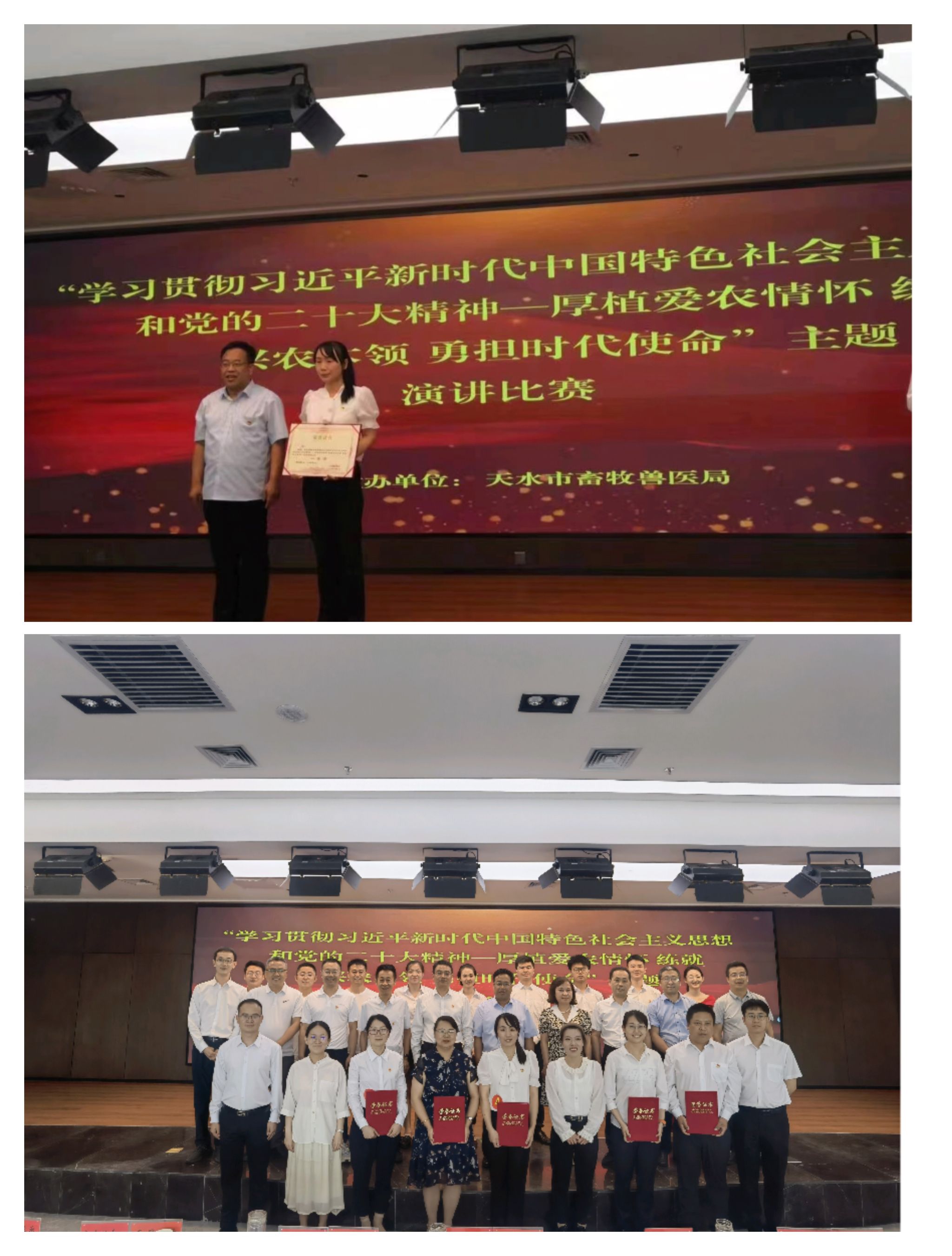 为隆重庆祝建党102周年,回顾党的百年光辉历史,讴歌党的光辉业绩,进一步引导局系统党员干部坚定跟党走、积极投身乡村振兴一线,不断厚植爱农情怀,练就兴农本领,增强使命担当。6月30日下午,天水市畜牧兽医局举办了“学习贯彻习近平新时代中国特色社会主义思想和党的二十大精神——厚植爱农情怀,练就兴农本领,勇担时代使命”主题演讲比赛。局领导班子成员及局属各单位主要负责人、结对共建社区代表、局系统全体干部职工共计80余人参加活动。