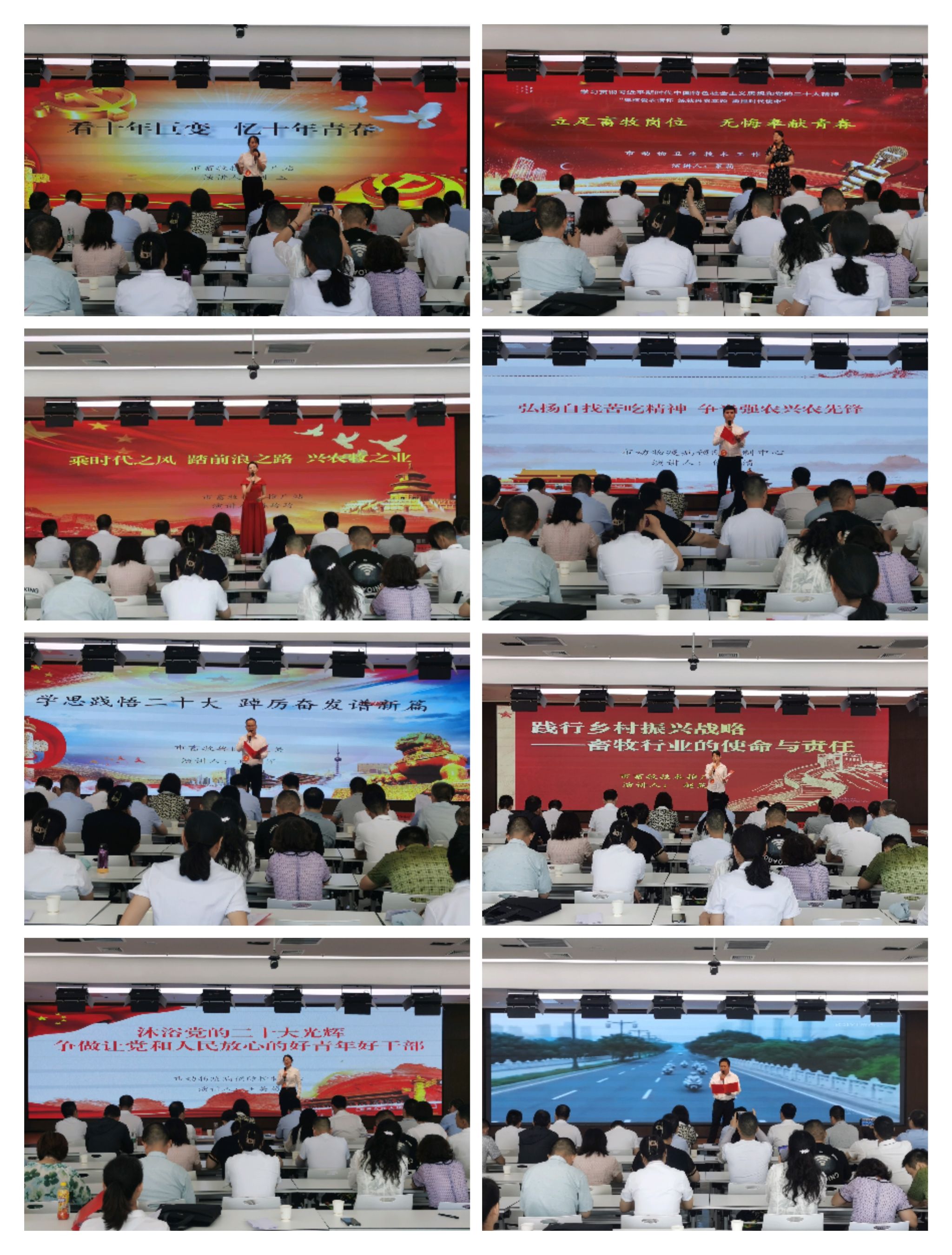 比赛现场,来自局机关和局属各单位的13名选手们紧紧围绕学习贯彻习近平新时代中国特色社会主义思想、党的二十大报告以及习近平总书记给中国农业大学科技小院同学们的回信精神为主题,立足本职岗位和畜牧兽医工作实际,以饱满的精神状态和激情澎湃的语言、鲜活的事例和精心制作的视频、音频,从不同的角度分享了学习贯彻习近平新时代中国特色社会主义思想和党的二十大报告的深刻感悟,结合个人学习成长实践,表达了他们扎根畜牧兽医事业,立志强农爱农,践行支农爱农的信心和决心,用实干彰显“请党放心,强农有我”的热忱担当,展现了他们坚守初心、爱岗敬业、勇担使命的精神面貌和风采。