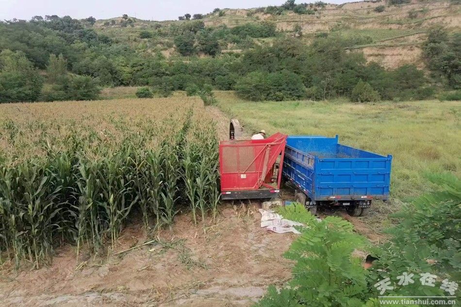 眼下,正是全株饲用玉米收获的季节,在秦安县各镇饲用玉米地里,轰鸣的收割机在田间来回穿梭,一行行玉米齐齐倒下,田间地头呈现出一派忙碌的景象。
