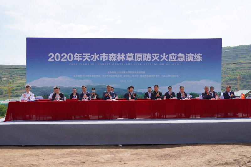 5月27日上午10时,2020年天水市森林草原防灭火演练在麦积区甘泉镇举行,市人大常委会副主任王晓琴、副市长逯克宗、市政协副主席郭明兴到场观摩,副市长董小平主持活动。