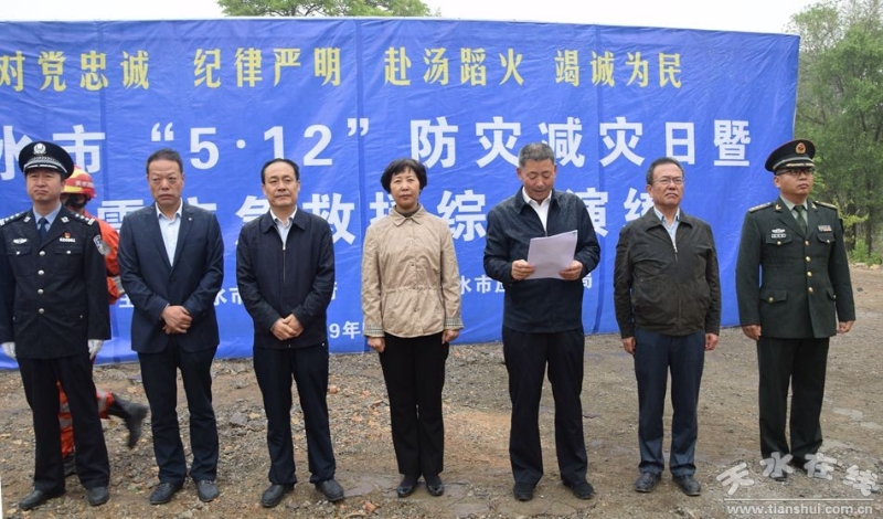 5月12日,由天水市减灾委主办的天水市5•12防灾减灾日暨地震应急救援综合演练在原天水岷山机械厂厂区举行。市人大常委会副主任王晓琴、副市长马瑛、市政协副主席郭明兴观摩了演。