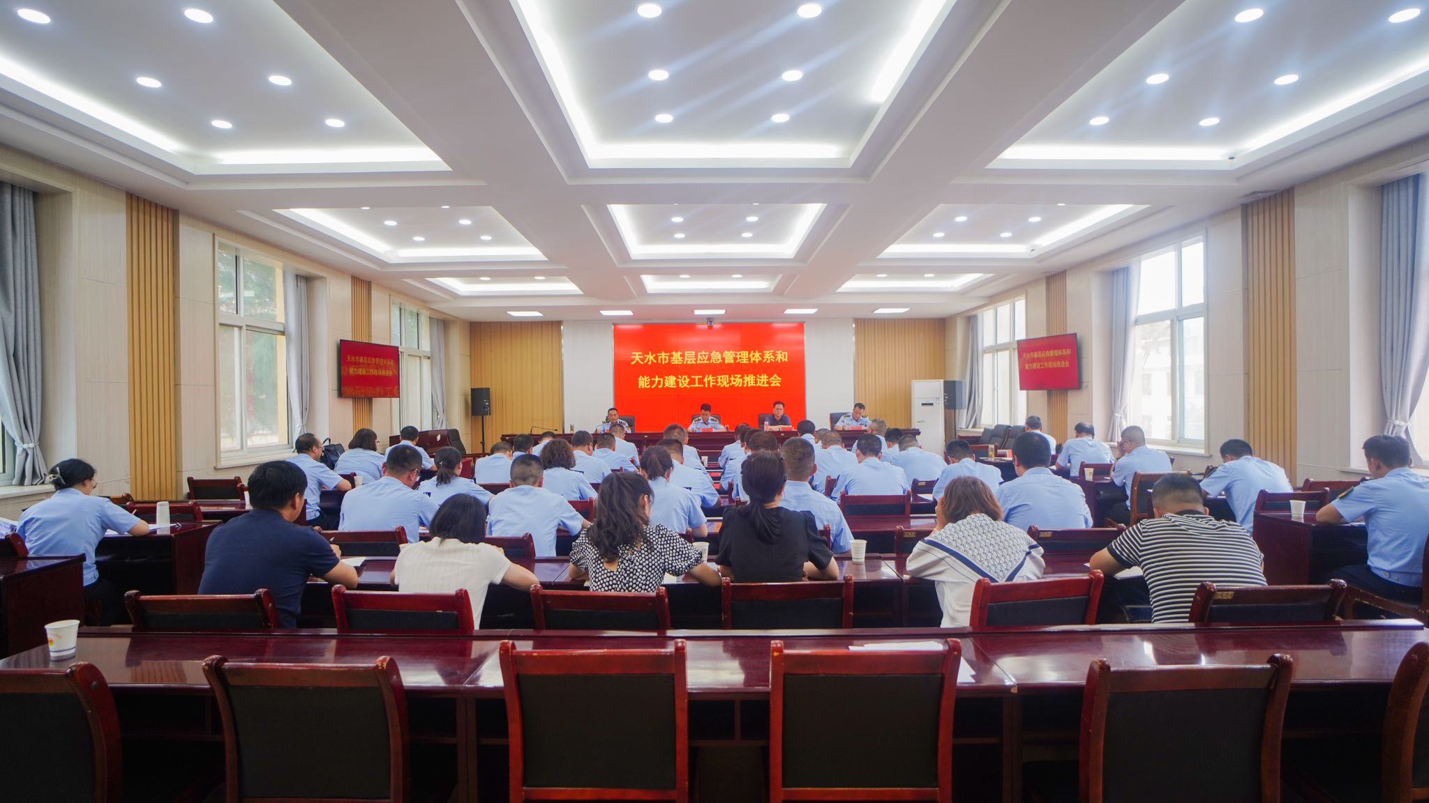 会前,与会人员集体观摩了麦积区麦积镇、清水县红堡镇基层应急管理体系和能力建设情况。听取了基本情况介绍,展示了工作中特色亮点和经验做法,参观了红堡镇“综合应急指挥平台”,深入了解了麦积镇、红堡镇应急管理机构、应急工作机制、应急管理制度、应急救援队伍、应急预案体系、应急物资保障、应急指挥平台和麦积村、安坪村综合应急队伍、应急避难场所、应急保障物资、叫应叫醒机制、应急处置方案建设情况。