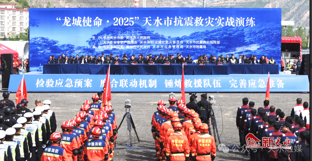在第17个全国防灾减灾日来临之际,4月25日上午,“龙城使命・2025”天水市抗震救灾实战演练在秦州区藉口镇举行。市委书记冯文戈出席并讲话。