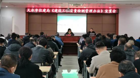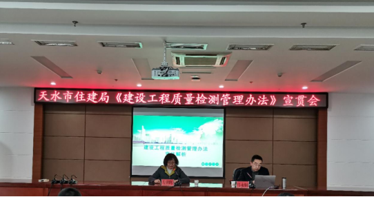 为切实贯彻落实新版《建设工程质量检测管理办法》(住房和城乡建设部令第57号),进一步规范我市检测市场和检测行为,3月16日,市住建局组织召开集中宣贯和培训会,市住建局党组成员、副局长左朝晖主持会议,各县区住建局、相关建设、监理企业及全市工程质量检测机构共计120余人参加。