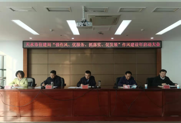 2月21日上午,天水市住建局召开作风建设年活动动员大会。会议传达学习了市委书记张永霞同志在全市作风建设年活动动员大会讲话精神,宣读了《市住建局关于开展“强作风、优服务、抓落实、促发展”作风建设年活动实施方案》,局党组书记、局长任佩光同志作了动员讲话。局领导班子成员,机关各科室、局属各单位负责人共计60余人参加会议。