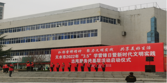 3月5日,天水市住房和城乡建设局组织20余名志愿者在龙城广场参加我市“弘扬雷锋精神•聚力文明实践•共享美好生活”学雷锋日暨新时代文明实践志愿者服务进基层活动启动仪式。