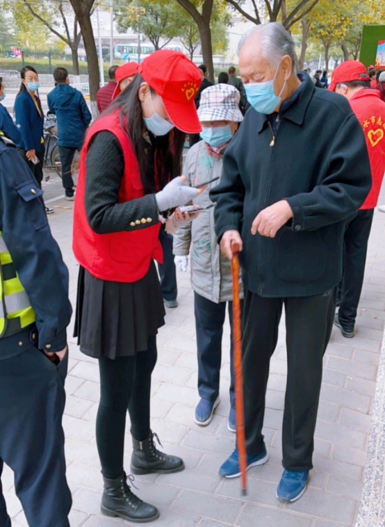 在检测点,志愿者们按要求认真做好防护措施,做好消毒等各项准备工作后,与医护人员一道投身到紧张的核酸检测工作中。志愿者们认真工作、一丝不苟,协助工作人员检查健康码、维持现场秩序,搀扶行动不便的居民,对群众的各种问题耐心细致地解答,帮助不会使用智能手机的老年人现场操作,得到了群众和充分肯定。